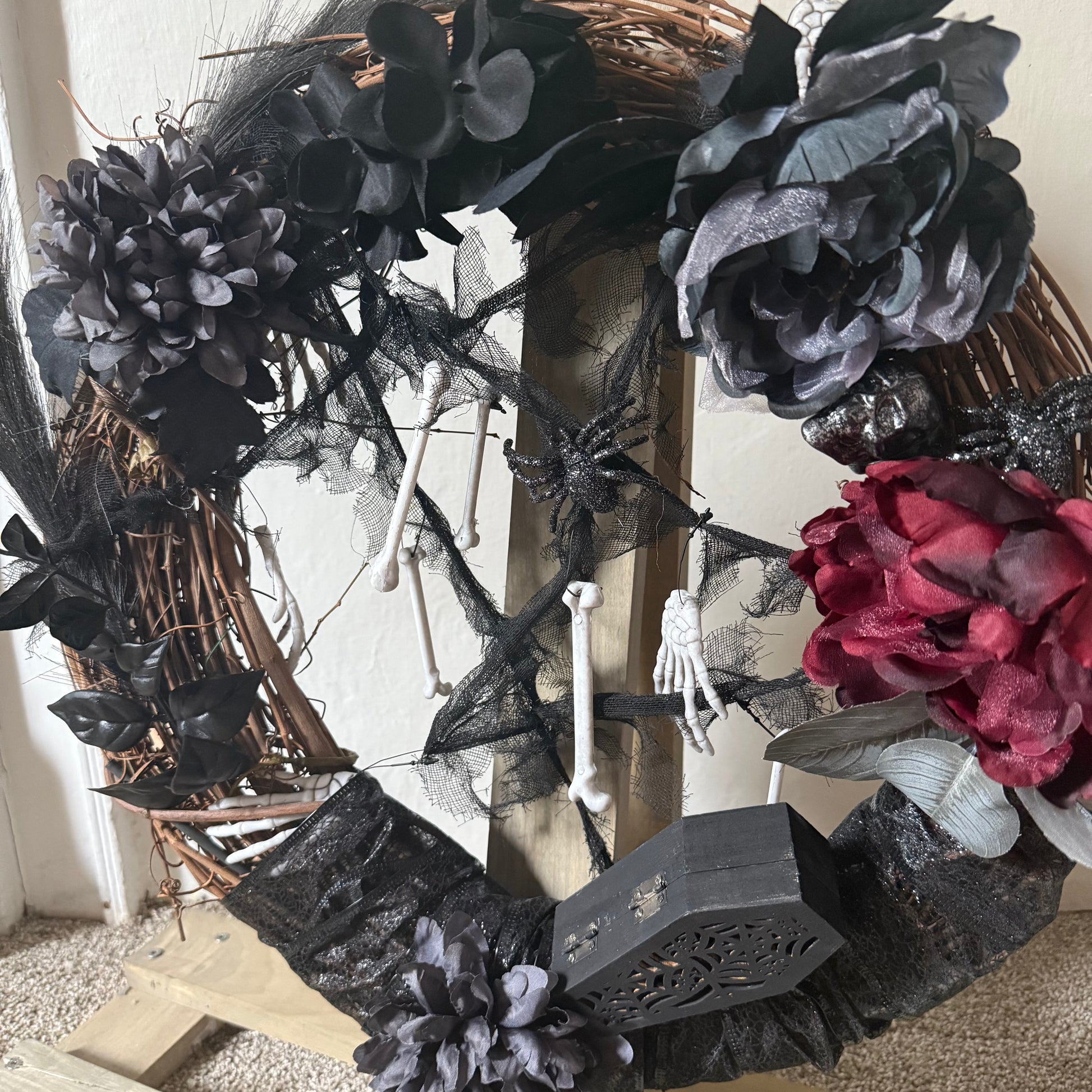 Add a touch of dark elegance with our 18” Gothic Bloom Wreath. Featuring an intricate design, this wreath is perfect for adding a little edge to your home decor. Embrace your inner goth and bring some playfully dark vibes to your space.